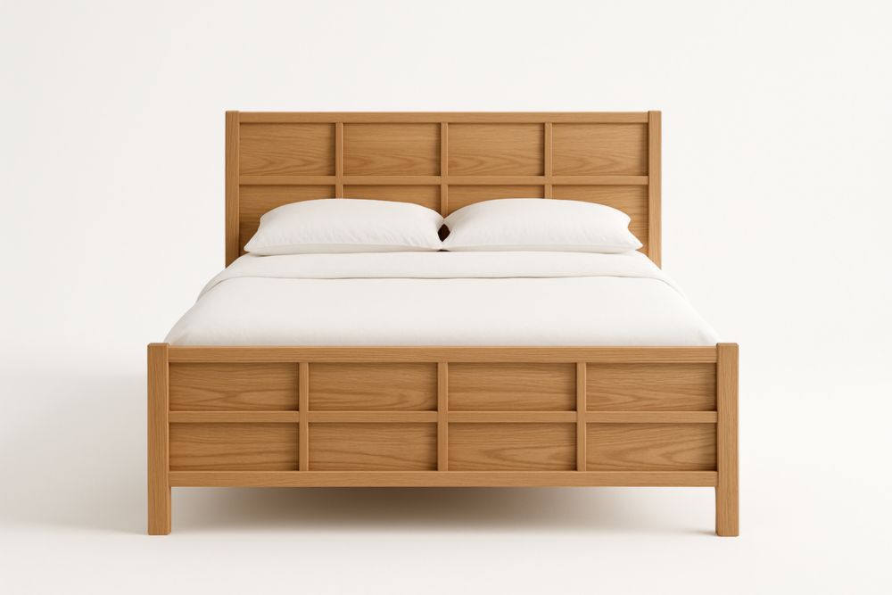 • Lit double en chêne clair avec tiroirs de rangement 200x160 cm