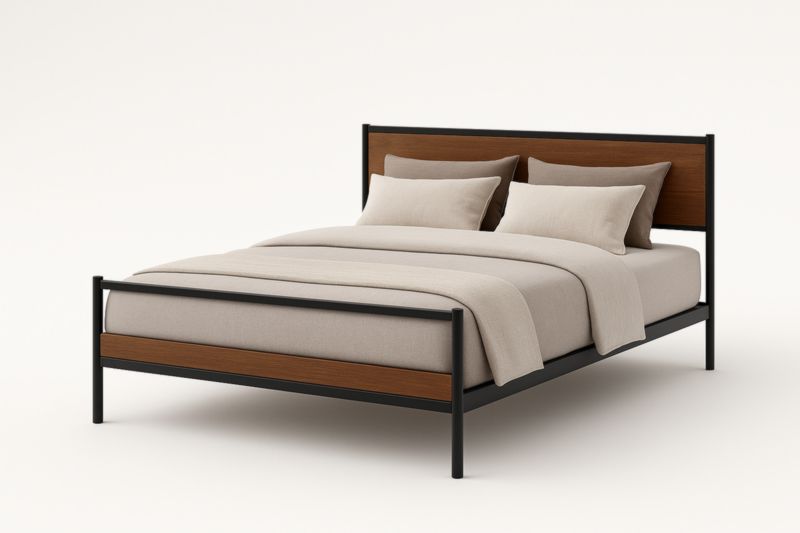 • Lit 200x160 cm en acier avec panneaux acacia massif et sommier à lattes en bouleau
