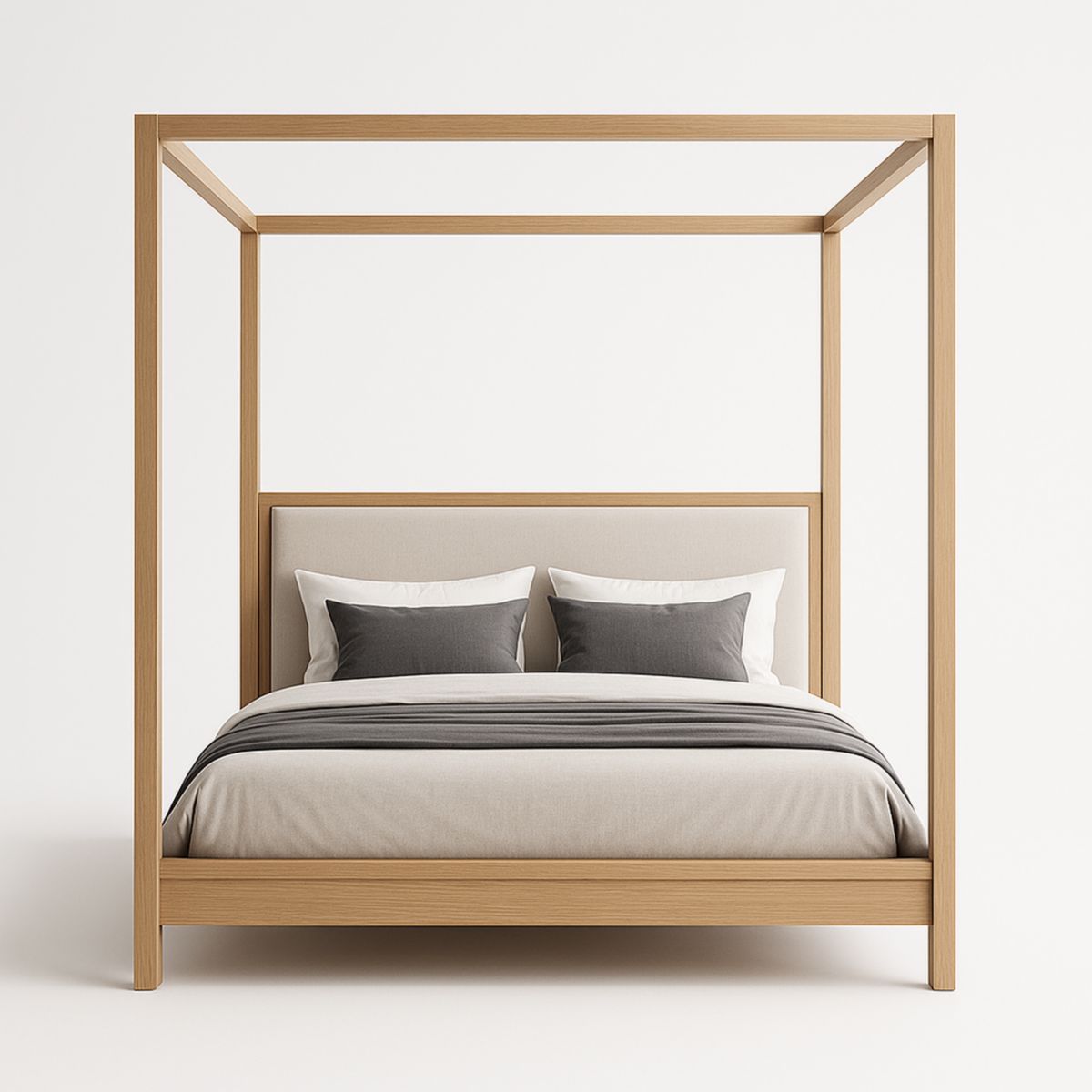 • Lit à Baldaquin en Chêne avec Tête de Lit en Polyester Beige 200x150 cm